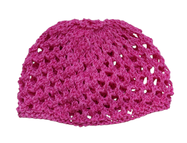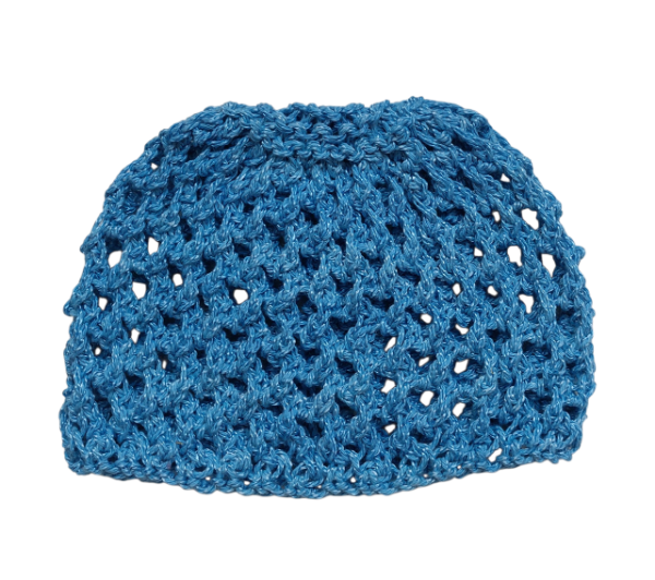 Casquito calado "Mesh Hat", trabajado en algodón cadenita con brillo, en colores lisos y matizados.